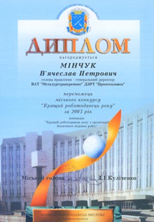 ЧАО "Металлургтрансремонт" в 1997 году отмечено высокой международной